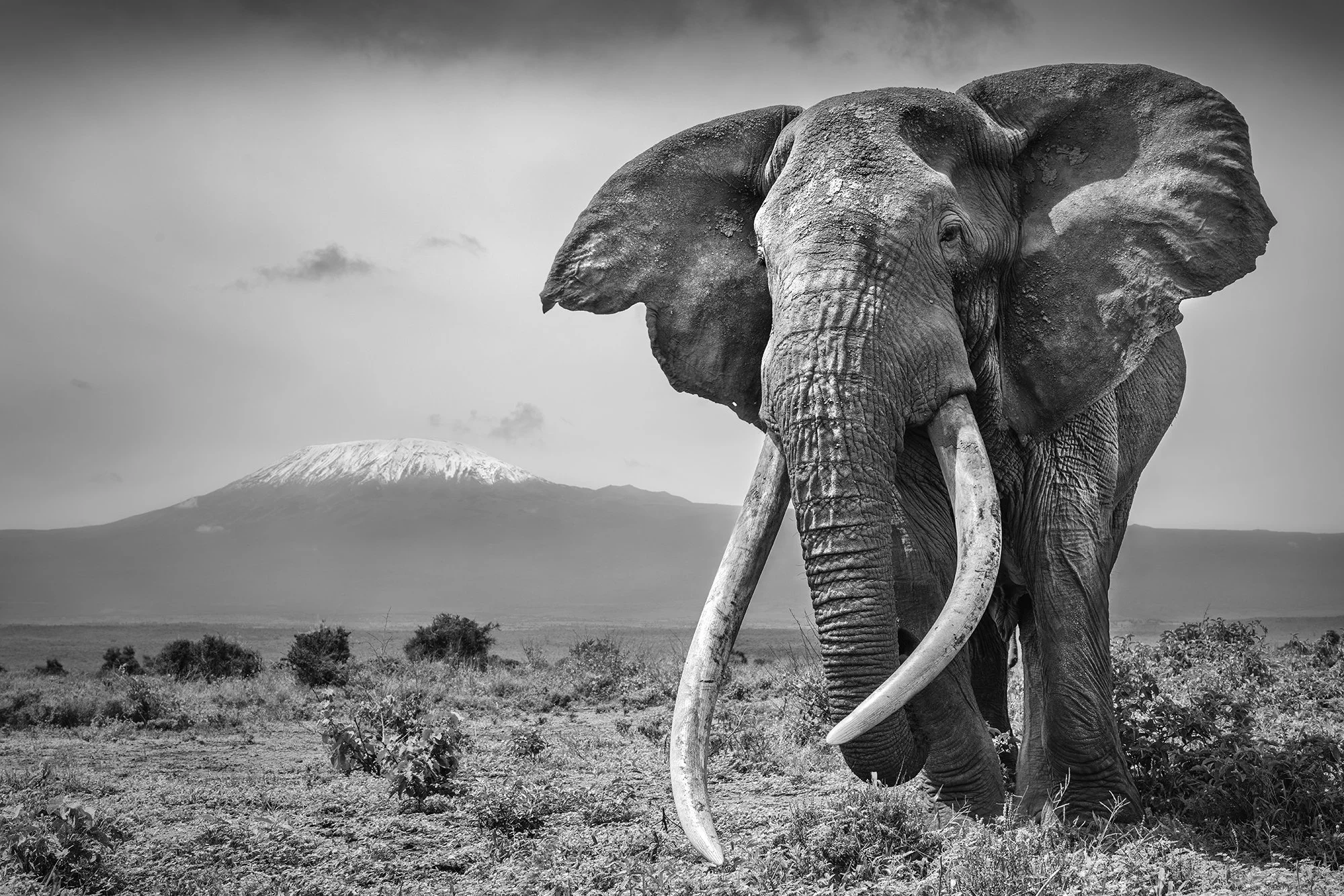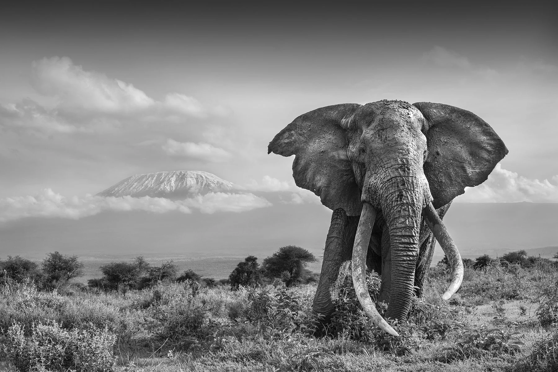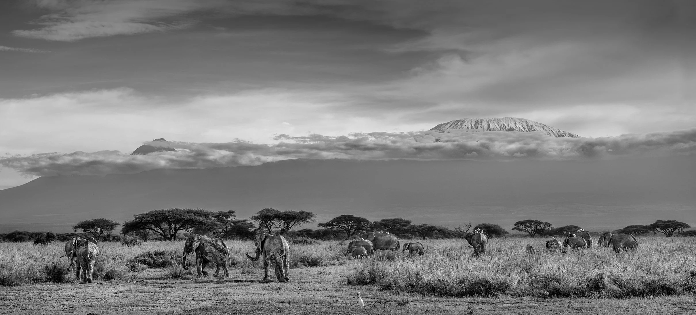 One of these rare “wow” moments can be seen in The Terrestrial Paradise. It was the end of a very long, cloudy day…just as the sun was starting to set, a family of elephants entered the bush, and Mount Kilimanjaro, with its snow peaks, suddenly came into view. The moment was almost divine in its pure beauty and magnificence, and the resulting panoramic work is no less breathtaking.